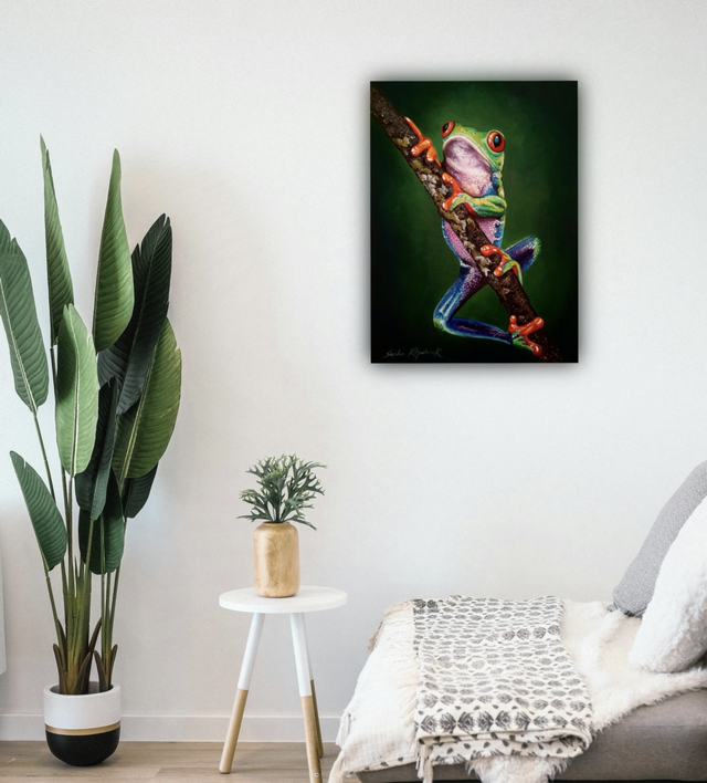 Fred the red eyed tree frog is a gorgeous little original acrylic painting by Sophie Bliss Kilpatrick