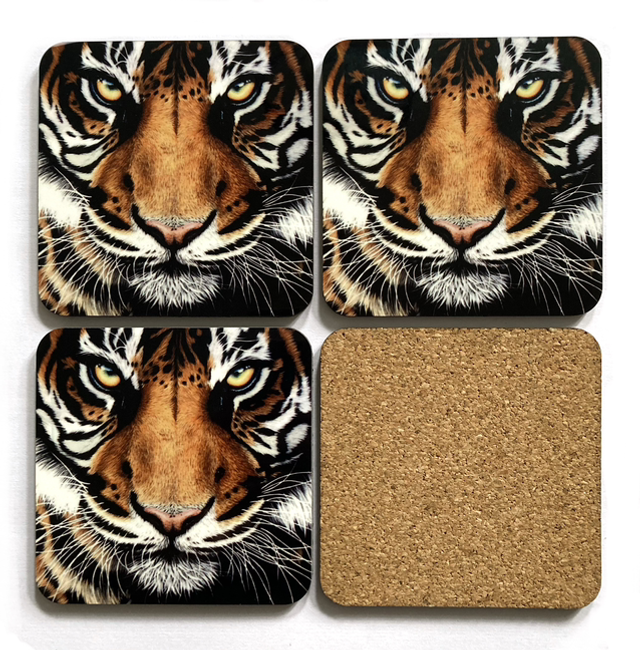Tiger cork backed coaster - single coaster.